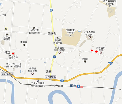 地図上の薬局の番号にマウスをのせると店舗情報が表示されます。
