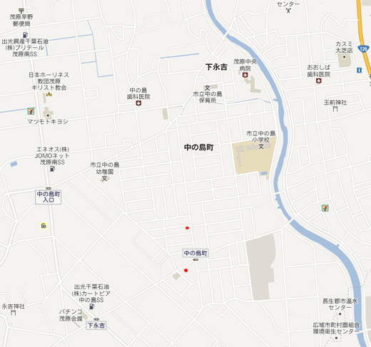 地図上の薬局の番号にマウスをのせると店舗情報が表示されます。